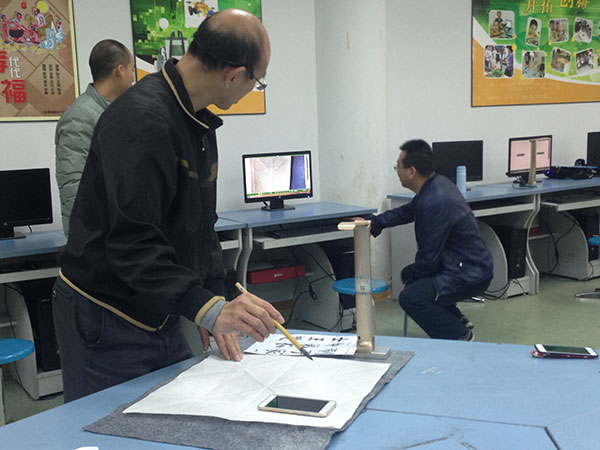 老師們現學現用,借助吉星無線微錄儀及軟件制作微課,現場熱鬧非凡。