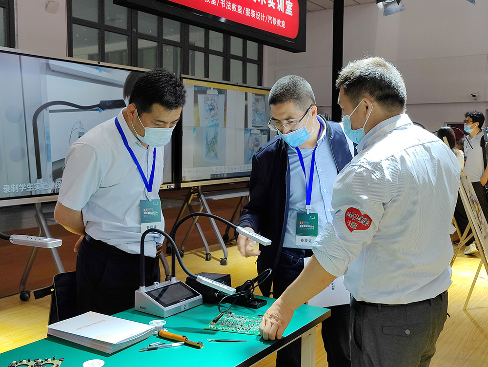 除了專業觀眾以外,不少領導專家被吉星產品吸引,停留在展位上,教育部職成司高職發展處副處長任占營更是前往吉星展位進行考察,并耐心聆聽了工作人員對產品的介紹講解。