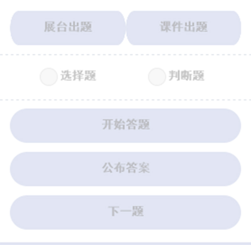 教師通過大屏展示測驗(yàn)考題,將試題轉(zhuǎn)化為電子形式展示,節(jié)約成本的同時也能夠讓學(xué)生清晰地看到試題。學(xué)生通過按鈕進(jìn)行作答,大屏實(shí)時展示答題狀況。
