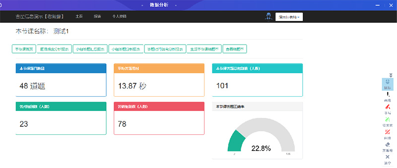 另外,試想一下,在課堂測驗(yàn)中老師如果可以及時看到學(xué)生在每一道題目正確率和數(shù)據(jù)統(tǒng)計(jì),在接下來的講解中就會更有側(cè)重點(diǎn),對于學(xué)生學(xué)習(xí)情況的掌握也會更清楚。