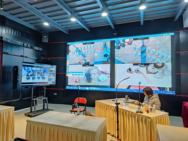 在上課過(guò)程,教師調(diào)取學(xué)生對(duì)陶瓷的上色過(guò)程,通過(guò)設(shè)備,教師能夠看到學(xué)生的細(xì)微操作,及時(shí)作出指導(dǎo)和修正,幫助學(xué)生更好掌握傳統(tǒng)技藝。而學(xué)生也可以及時(shí)提問(wèn),解決在技藝學(xué)習(xí)中的疑問(wèn)。