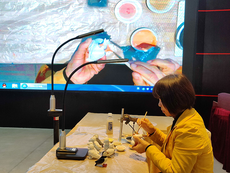 在小鎮(zhèn)中,非遺技藝傳承人展開(kāi)了傳統(tǒng)技藝的教學(xué)。在陶瓷坯體上,教師耐心地勾勒著細(xì)節(jié),不同的顏色被一點(diǎn)點(diǎn)涂抹到陶瓷上,展現(xiàn)出了藝術(shù)的美麗。