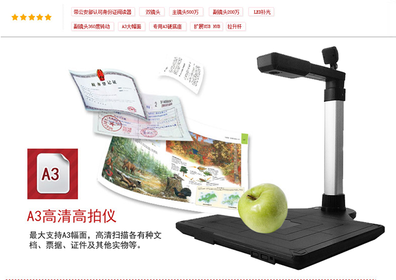 | 拍攝尺寸 | A3及A3以下文檔 |