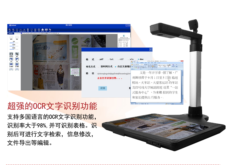 | 其他 | 支持OCR識別,對掃描件實現(xiàn)智能定位;支持自動剪裁,自動糾偏; |