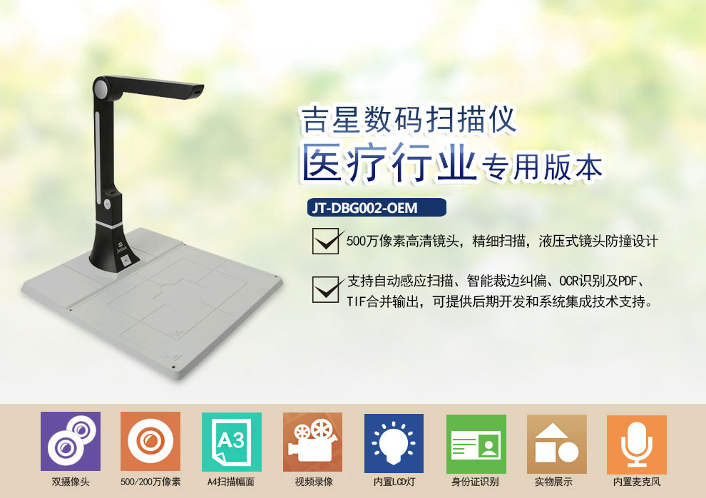 吉星數(shù)碼掃描儀醫(yī)療行業(yè)專用版 JT-DBG002-OEM a4幅面 500萬(wàn)像素 帶硬墊底座