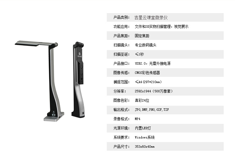 機械折臂270度翻轉式:90度可拍攝文稿;180度可拍攝課堂活動,用作簡易的錄播系統;270度可錄制微課