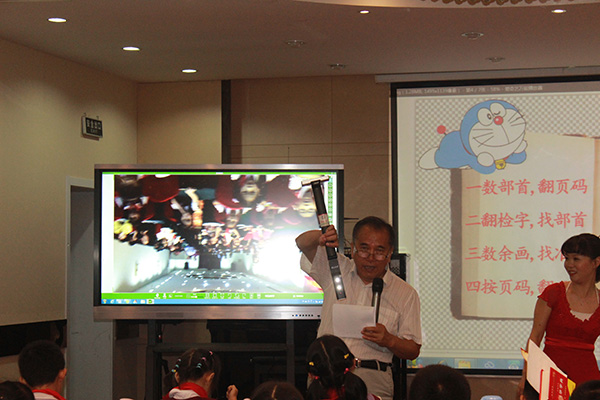 許老師在現場課現場使用吉星無線微錄儀,現場輕松制作出哆啦A夢教小朋友查字典的微課,并生動的運用在課堂教學當中!