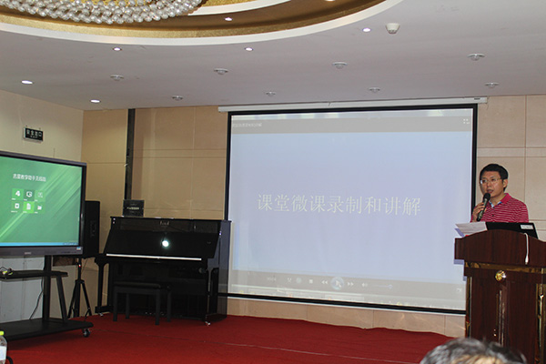 中國教育技術協會學術委員會副主任/北京電教館原館長--潘克明為《基于無線微錄儀的課堂綜合創新應用研究》做開題報告。